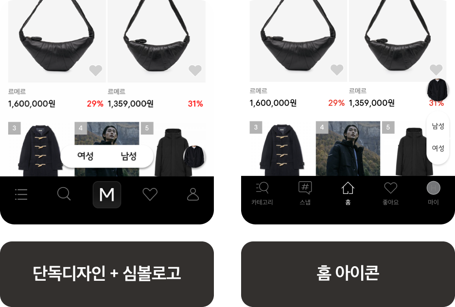 하단 내비게이션 바의 홈 탭 디자인, 어떤 차이가 있을까요?